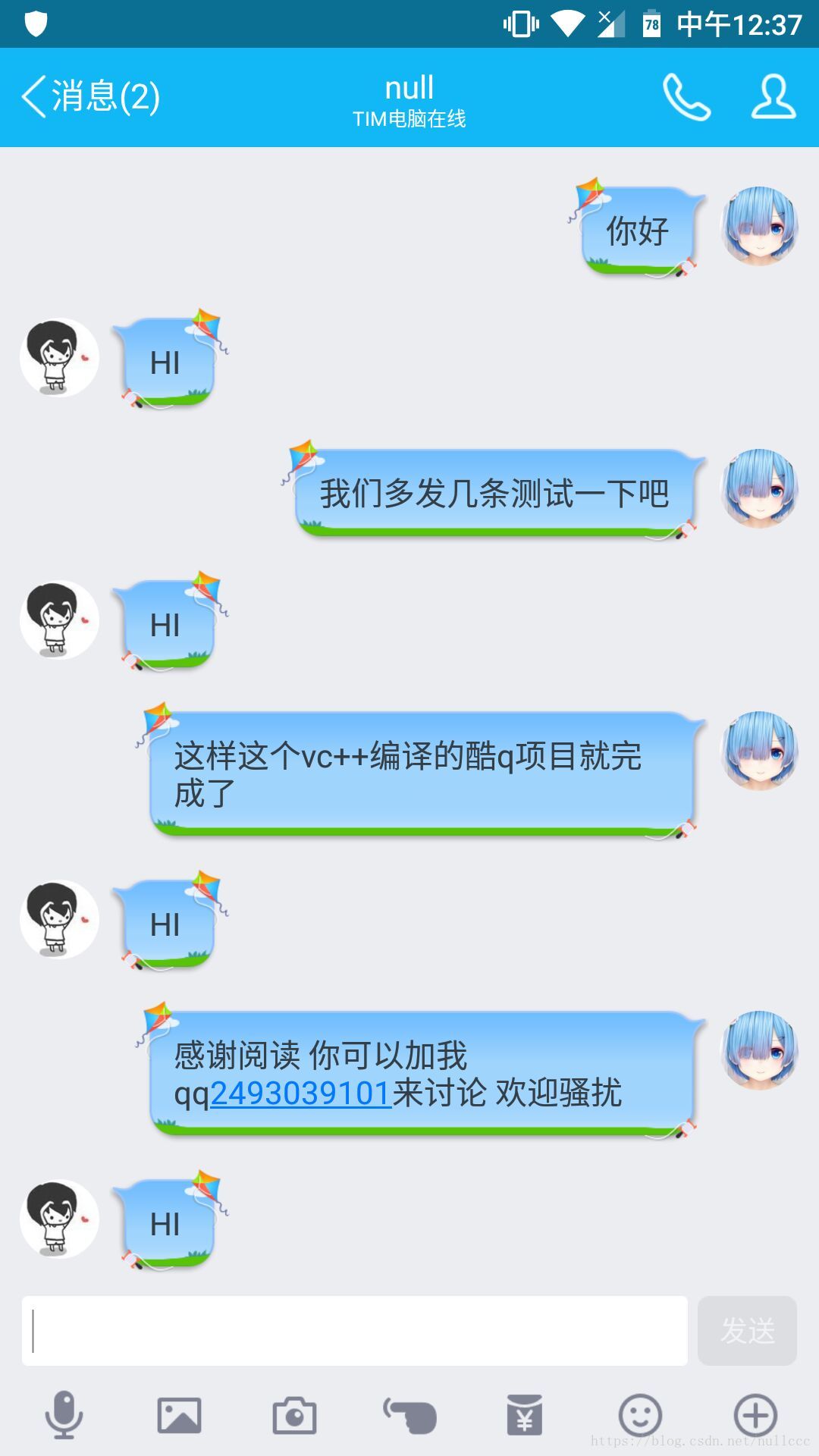 这样就可以做到,只要机器人收到私聊消息,他就会回复一条“HI”