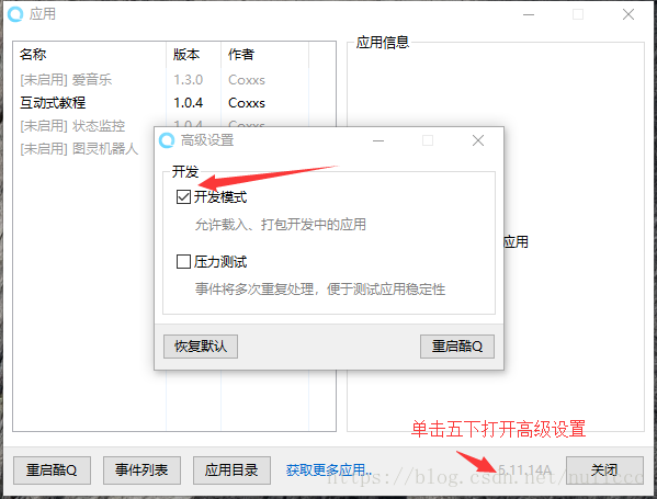 然后重启酷Q,单击五下版本号,开启开发者模式。