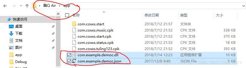 在项目目录找到两个文件 ”com.example.democ.dll“和”“
