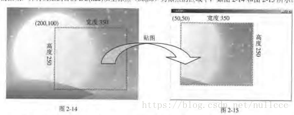 BitBlt(hdc, 50, 50, 350, 250, mdc, 200, 100, SRCCOPY);