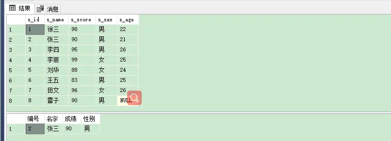 【例2】在表student和表stu_detail上创建视图stu_glass