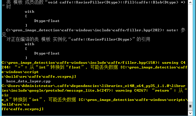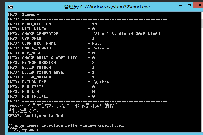 这里的错误主要是系统环境变量中未进行设置:在编辑系统环境变量的path中加入我们新建的python3.5的环境:C:\ProgramData\Anaconda3\envs\caffe,之后运行build_win.cmd即可。注意:每次执行前建议删除build文件夹