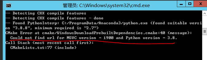 这里主要是在进行编译中,虽然我们已经更改了python环境路径,但是依旧会出现python版本问题,找到的是Anaconda中的base环境下的python版本。