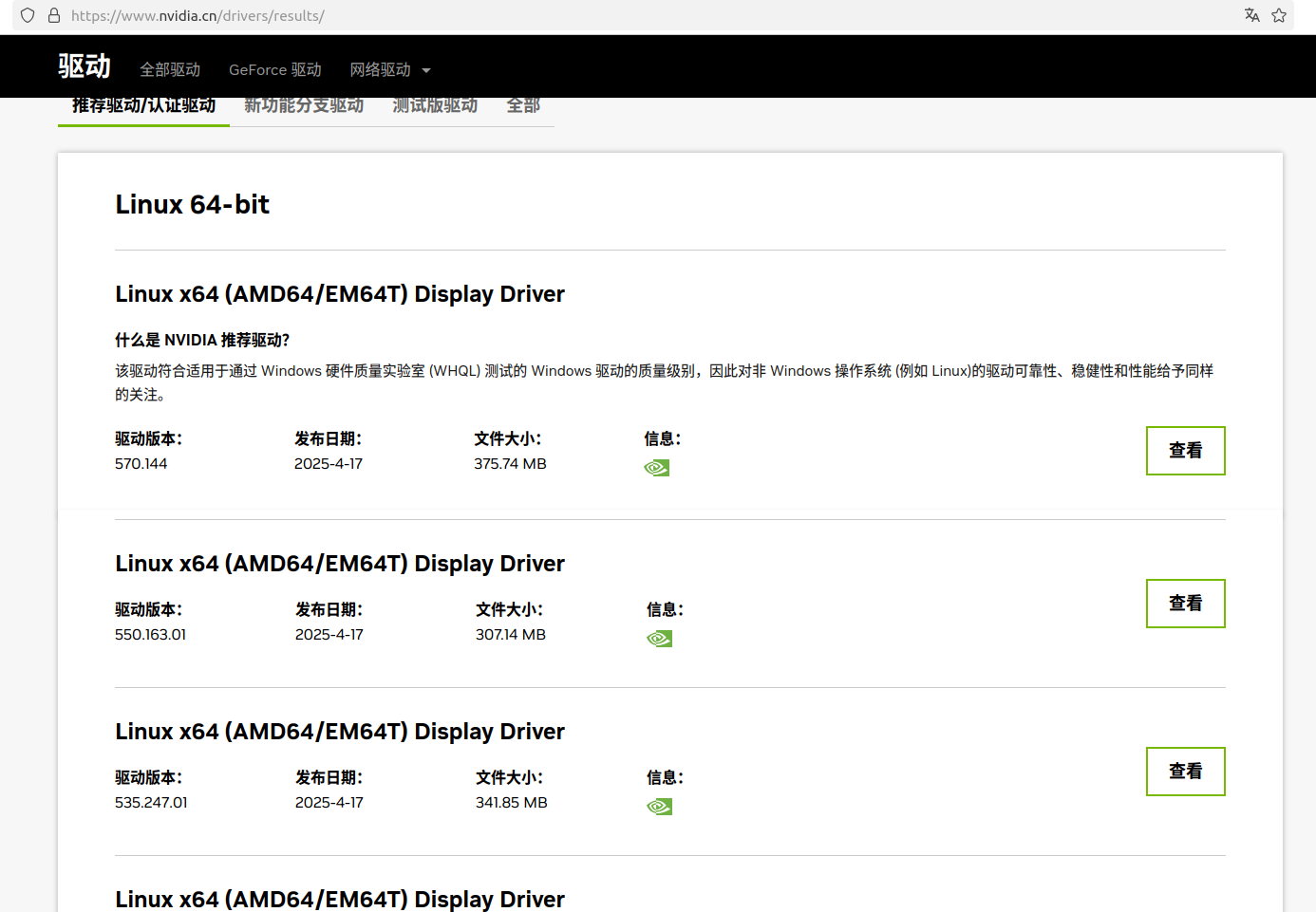 选择电脑对应的驱动:比如:NVIDIA-Linux-x86_64-550.163.01.run