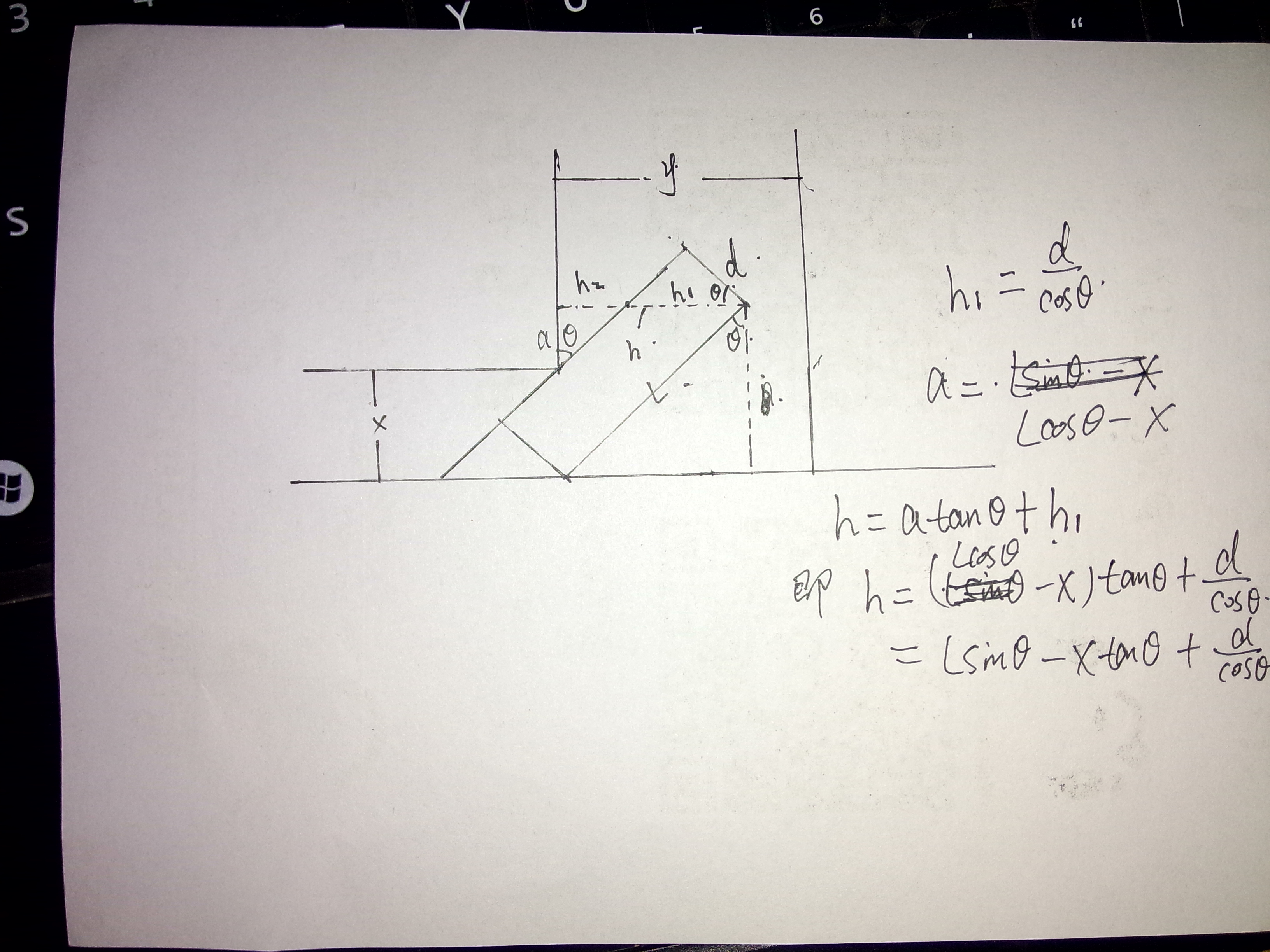 即变相的求函数h=l*sin(a)-x*tan(a)+d/cos(a)的最大值,显然用三分法!