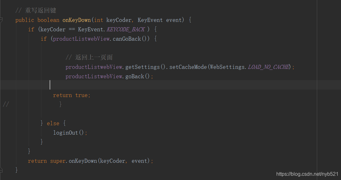 重写返回键,cangoback的时候就返回,否则就退出,看了半天也没有发现什么问题,