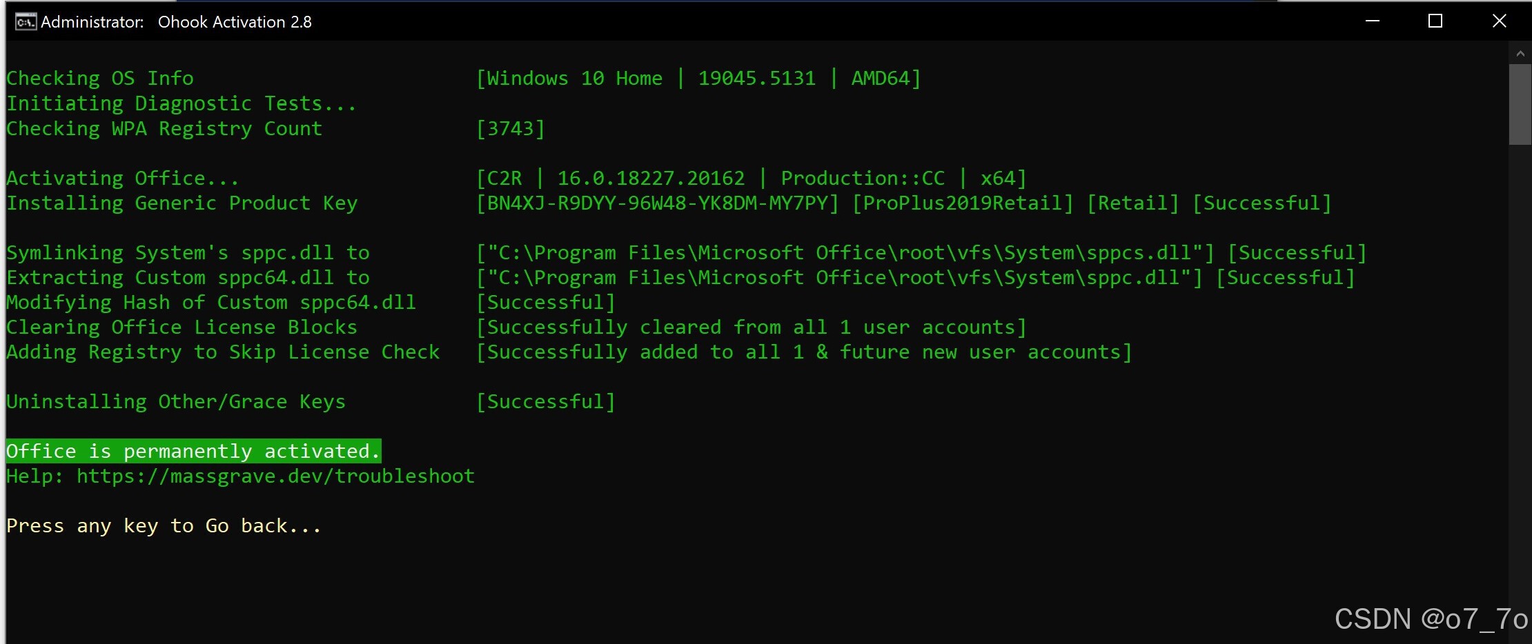 问题成功解决后,按任意键,可以返回cmd窗口。再按0退出cmd的窗口。