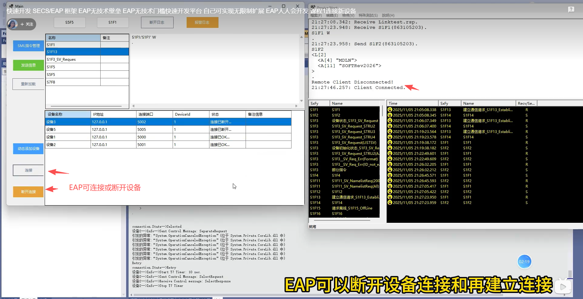 SECS/EAP(半导体设备通信协议)框架可通过模块化设计降低技术门槛,例如提供可视化配置工具和预制通信模板。开发者无需深入理解底层协议细节,只需通过拖拽组件或填写表单即可完成设备连接配置。