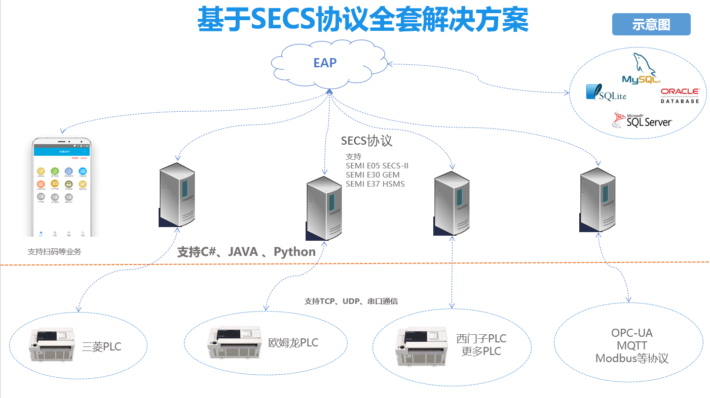 随着智能制造和工业4.0的快速发展,半导体、电子制造及高端装备制造行业对设备与上位系统之间的高效、标准化通信需求日益增强。SECS(Semiconductor Equipment Communications Standard)协议作为国际通用的半导体设备通信标准,已成为连接生产设备与MES/ERP系统的桥梁。本文将详细介绍一套基于SECS协议的全栈式工业通信解决方案,涵盖从EAP(Equipment Application Program)到客户端、移动端的完整架构设计与实现路径。