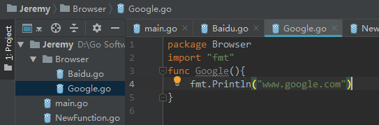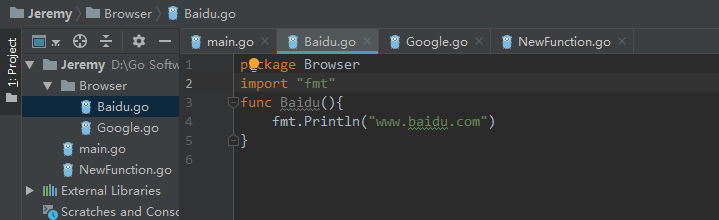 3.1)在Jeremy目录下创建一个Browser文件夹,然后在这个文件夹下创建2个功能,分别是Baidu和Google