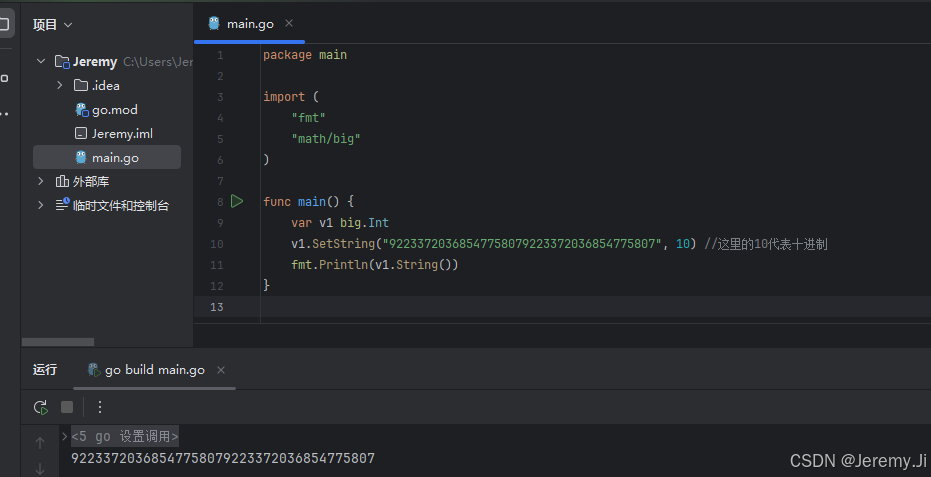 v1.SetString("92233720368547758079223372036854775807", 10) //这里的10代表十进制