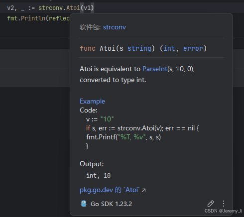 v2, err := strconv.Atoi(v1),可以使用"_"占位符来忽略err
