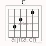 和弦图像一个4行5列的网格,表示琴弦的位置和品柱位置。