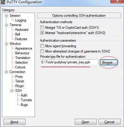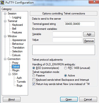 4,设置PuTTY的Connection--Telnet值,设置Connection--SSH--Auth/Tunnels的对应值。