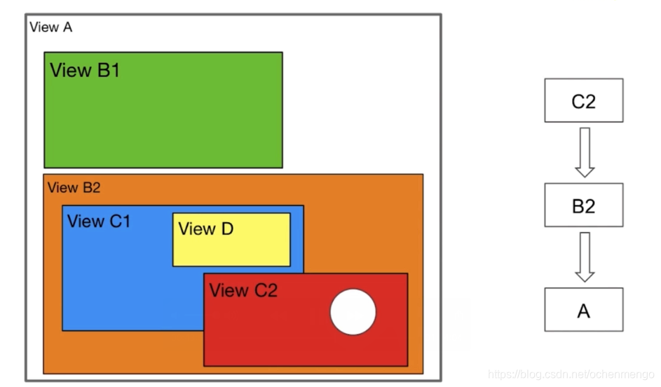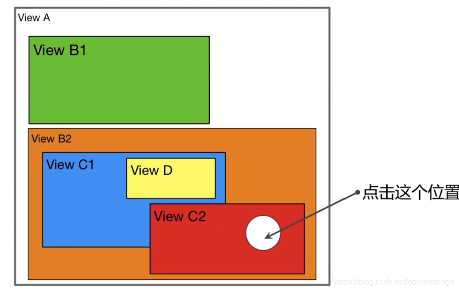 点击ViewC2的的空白区域,系统是最终怎样的方式才找到了最终事件响应的视图是C2的呢?