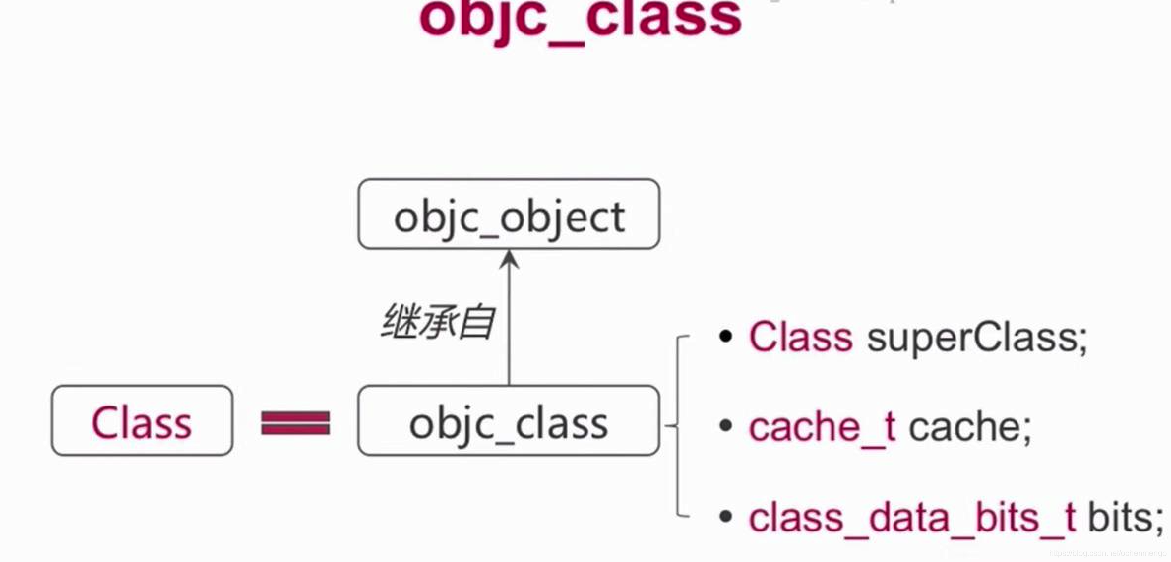 - 首先从objc_class这么一个结构体(数据结构)开始,objc_class继承于objc_object