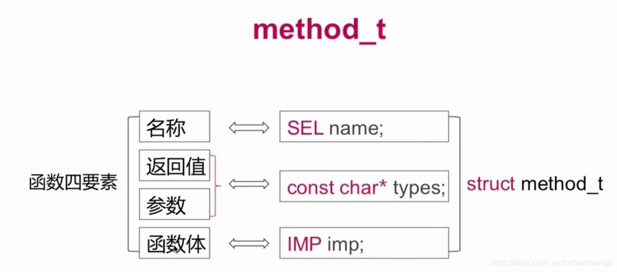 method_t是对函数四要素(名称、返回值、参数、函数体)的封装