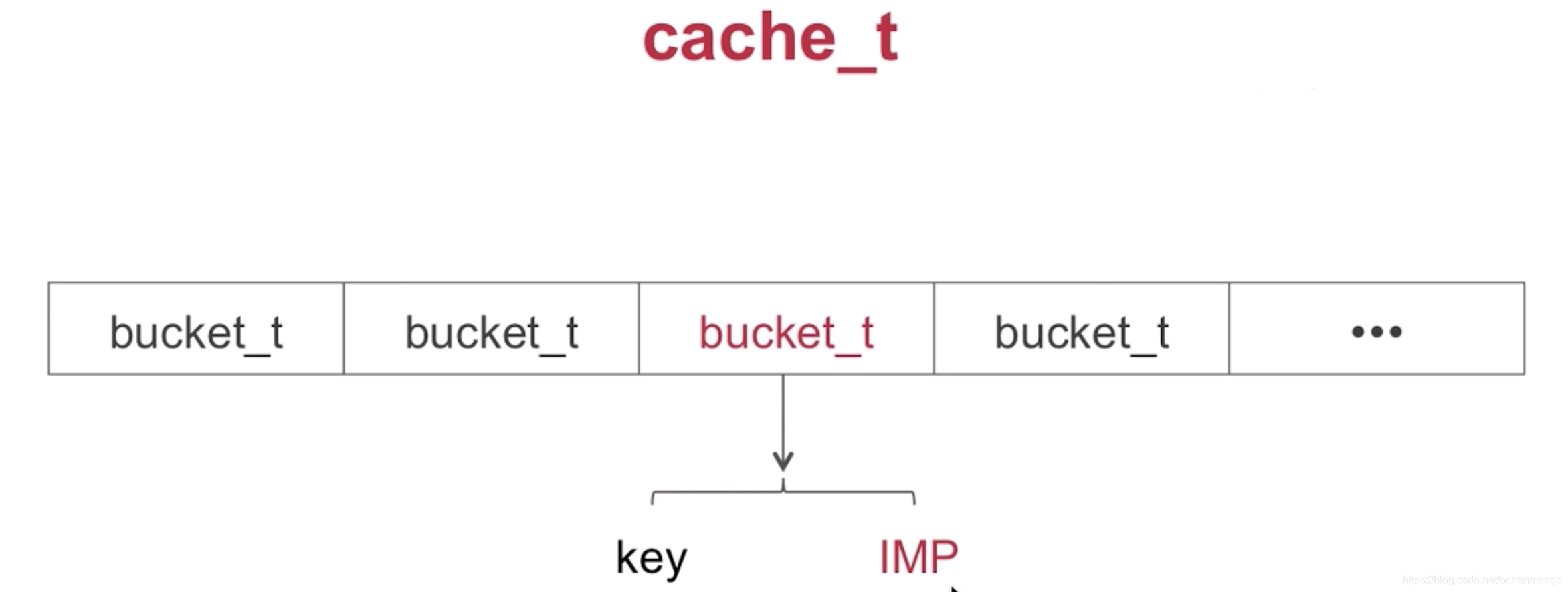 - 每个对象都是bucket_t这样的一个结构体, bucket_t有两个主要成员变量,key和IMP