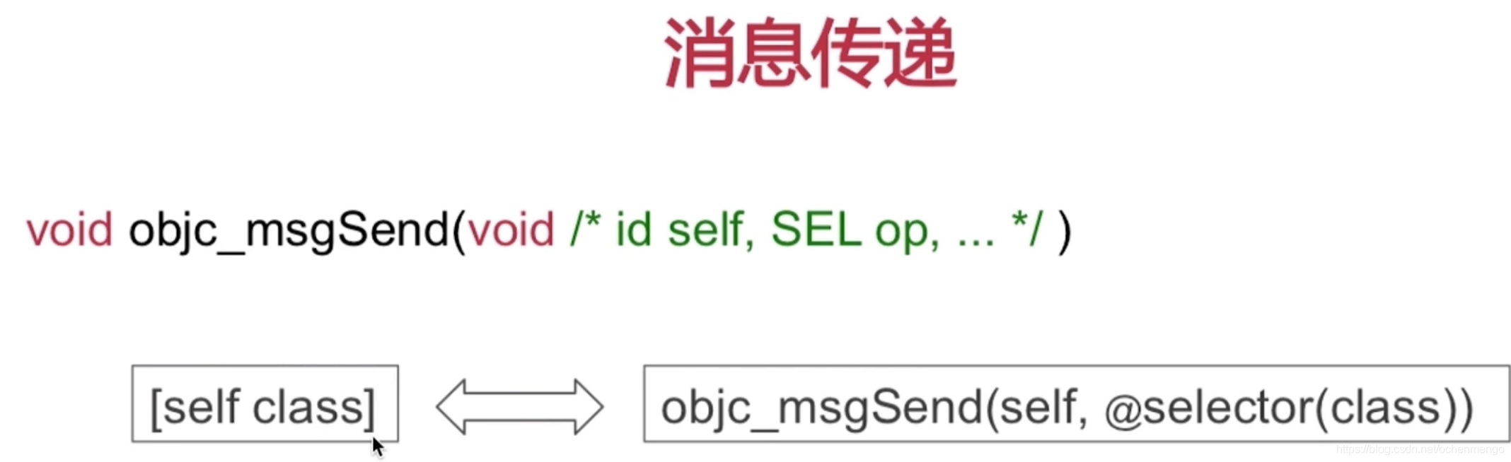 再后面才是消息传递的真正的方法参数。 - 对于任何一个消息传递[self Class],通过编译器都会转换成关于objc_msgSend的函数调用