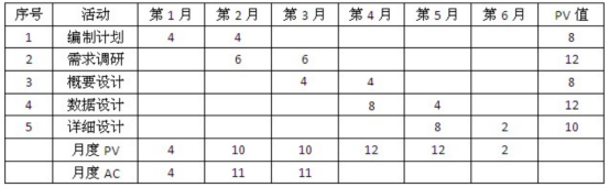 计算中期检查时项目的CPI、CV和SV,以及“概要设计”活动的EV和SPI。