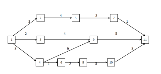67、下图标出了某产品从产地Vs到销地Vt的运输网,箭线上的数字表示这条输线的最大通过能力(流量)(单位:万吨/小时)。产品经过该运输网从Vs到Vt的最大运输能力可以达到 ( ) 万吨/小时。