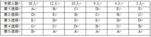 例如,有18位专家对项目的优选排序都是ADECB,依此类推。