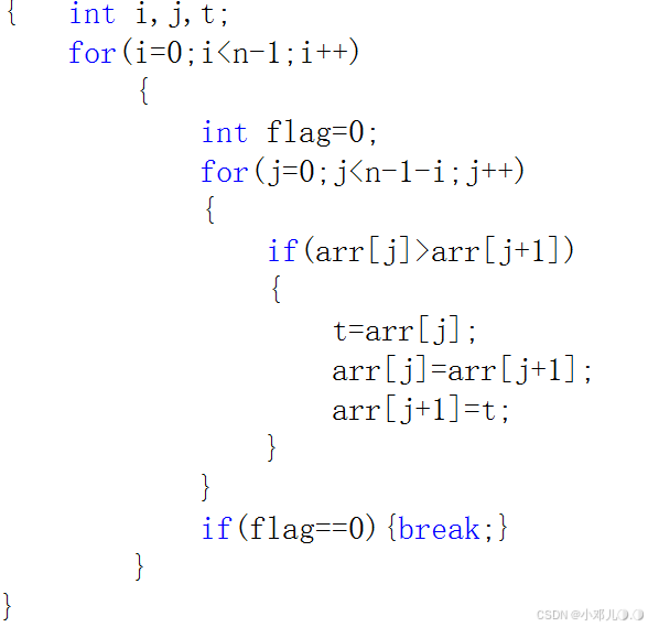 这段代码就是冒泡法的核心实现,通过两层嵌套循环,不断比较和交换相邻元素,直到整个数组变得有序。每一轮比较和交换之后,最大的元素就会像一颗冉冉升起的气泡,浮到数组的顶端。