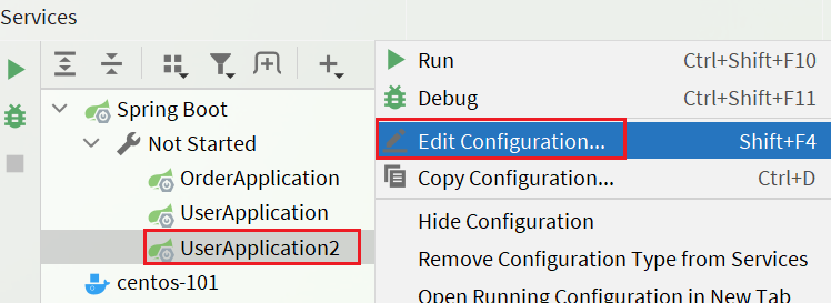 3)运行两个UserApplication,使用不同的profile