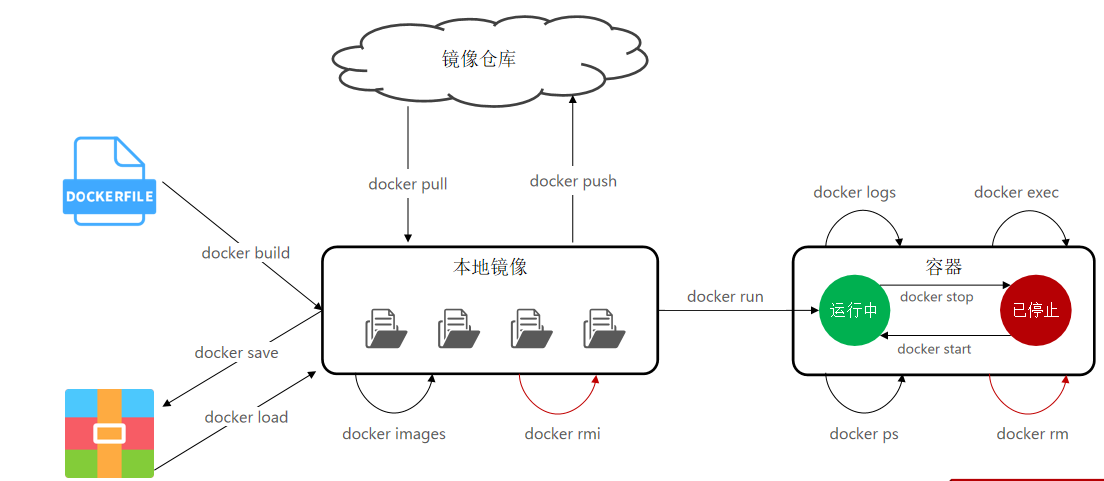 | docker load | 加载本地压缩文件到镜像 | |