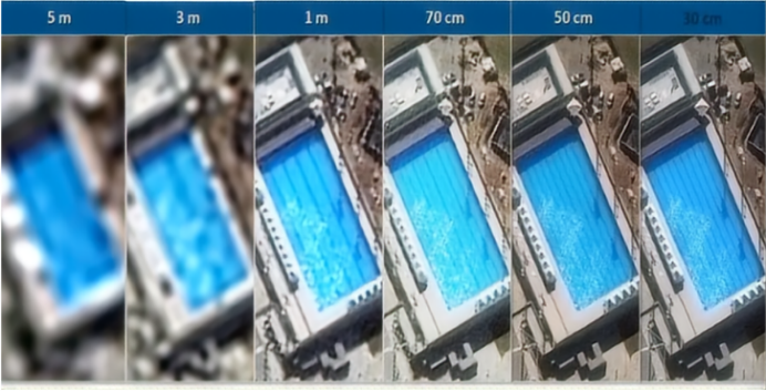 卫星遥感数据的空间分辨率指的是遥感图像能够详细区分的最小地面单元的尺寸,也就是图像上的每个像元(像素)所代表的实际地面尺寸。它是衡量遥感数据质量和适用范围的一个重要参数,决定了遥感图像所能捕捉到的地表特征细节的多少。可以把卫星遥感影像想象成一张“像素拼图”,每一个小方块就是一个像素,空间分辨率越高,这个小方块对应的地面面积就越小,能看清的地面细节就越多。
