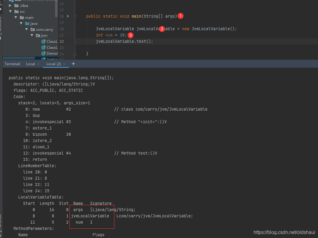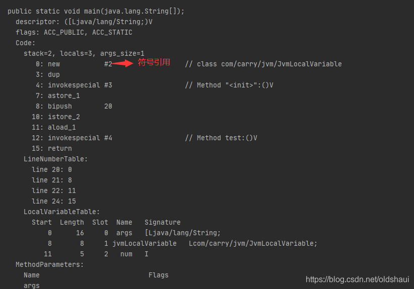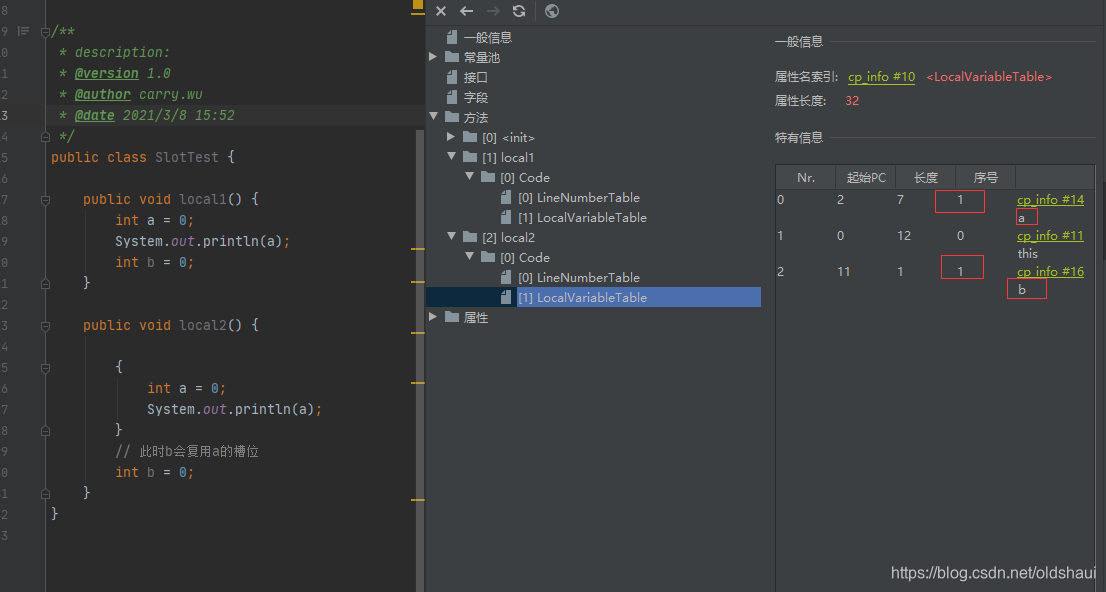 利用javap命令对字节码文件进行解析查看,局部变量表: