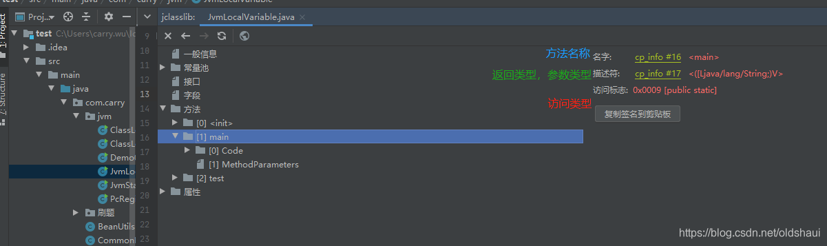 也可以在IDEA 上安装jclasslib byte viewcoder插件查看字节码信息,以main()方法为例
