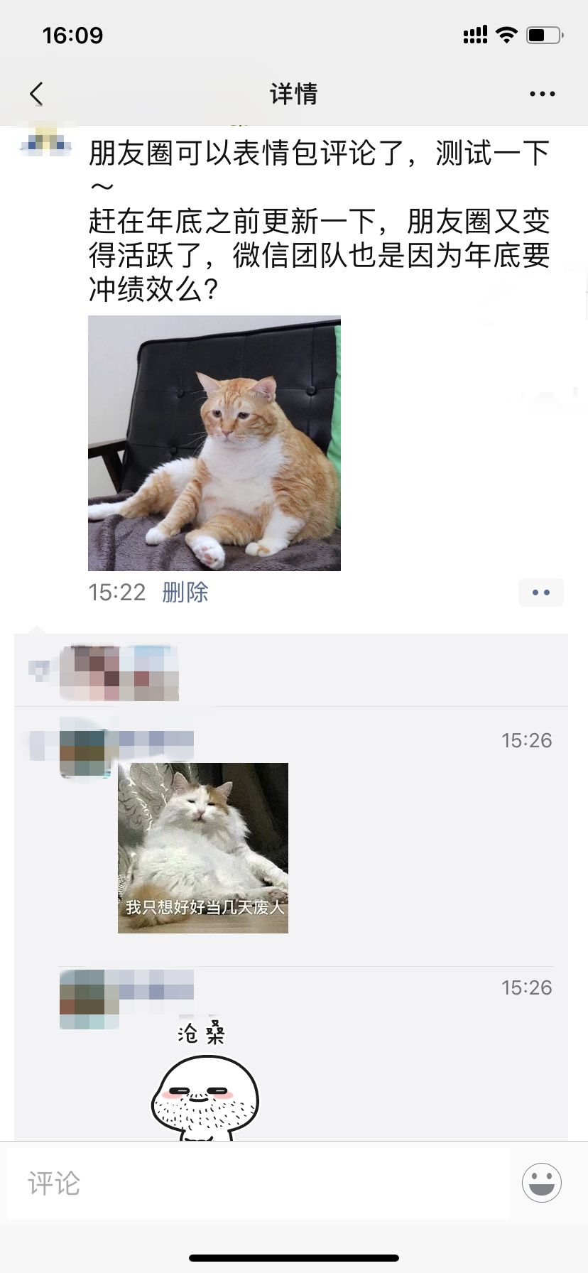 这些更新的功能中,最受关注的当然就是新增朋友圈表情包评论功能。