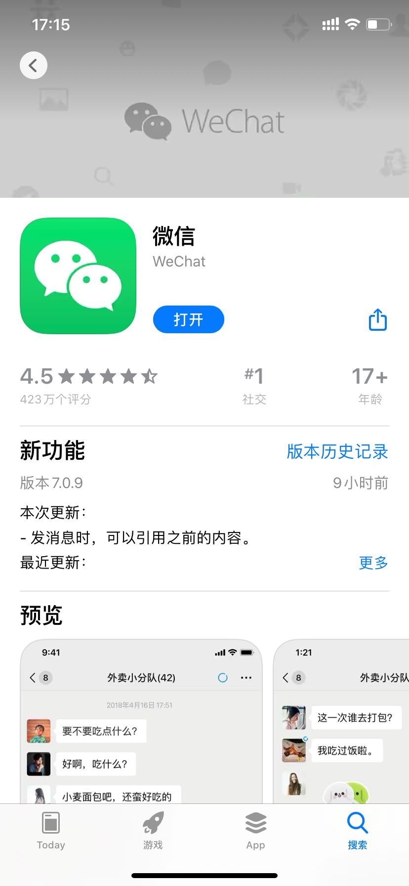 12月23日,微信发布iOS 7.0.9版本更新,支持发消息时可以引用之前的内容。