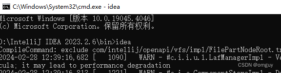 1.在安装idea的bin目录使用cmd,输入idea会看到提示