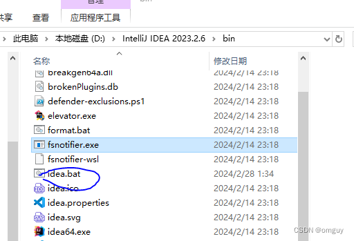 2.在bin目录找到idea.bat文件,打开之后编辑(最好是用Notepad++)