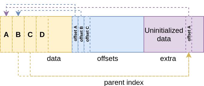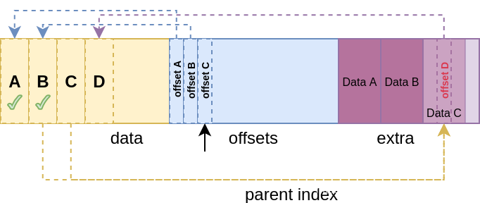 那是完全不同的! 越野车版本允许通过偏移缓冲区(蓝色)发送带有父索引的活页夹对象。