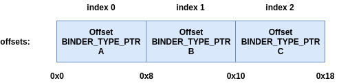 让我们举个例子,如果对象的偏移量为0x10 (上图中的对象BINDER_TYPE_PTR C),则索引的正确值应为0x2 :