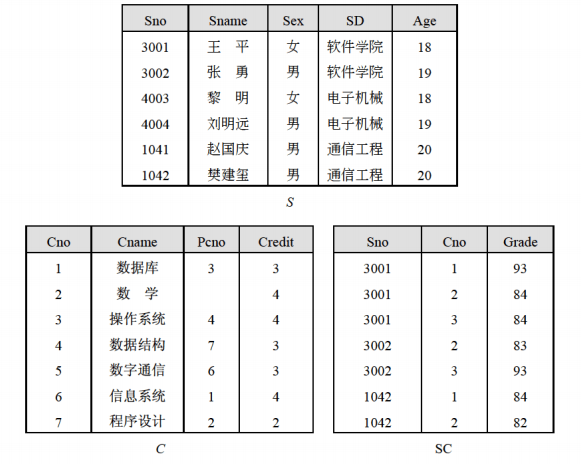 - 关系模式:对关系的描述,如:关系名(属性名1,属性名2,.……,属性名n)