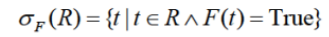 F中的运算对象是属性名(或列的序号)或常数,运算符、算术比较符和逻辑运算符。