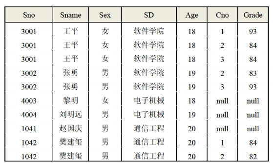 左外连接:取出左侧关系中所有与右侧关系中任一元组都不匹配的元组,用空值 nul 充填所有来自右侧关系的属性,构成新的元组,将其加入自然连接的结果中。如