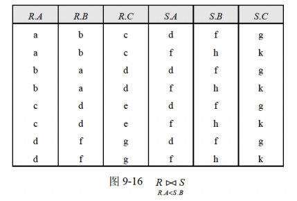 其中,XθY为连接的条件,θ是比较运算符,X和Y分别为R和S上度数相等且可比的属性组。也可表示为: