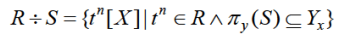 除运算是同时从关系的水平方向和垂直方向进行运算。给定关系R(X,Y)和S(Y,Z),X、Y、Z为属性组。R÷S应当满足元组在X上的分量值x的象集