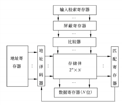 相联存储器是一种按内容访问的存储器。其工作原理就是把数据或数据的某一部分作为关键字,按顺序写入信息,读出时并行地将该关键字与存储器中的每一单元进行比较,找出存储器中所有与关键字相同的数据字,特别适合于信息的检索和更新。