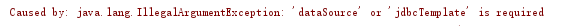 throw new IllegalArgumentException("'dataSource' or 'jdbcTemplate' is required");