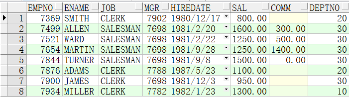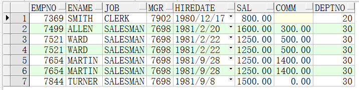 SELECT deptno FROM dept INTERSECT --交集(共有内容) SELECT DISTINCT deptno FROM emp