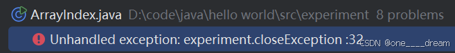 异常有许多种,如IOException(输入输出异常),SQLException(SQL数据库操作异常),ClassNotFoundException(类未找到异常),ArrayIndexOutOfBoundsException(数组下标越界)等,下面以ArrayIndexOutOfBoundsException为例来看看异常长什么样子。