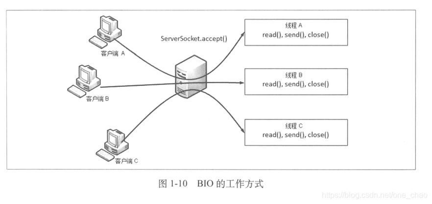 实践中接触的比较多的网络模型。当我们用Socket进行网络通信开发时,常用的BIO,NIO,AIO