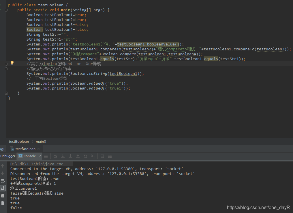 System.out.println("测试compare"+Boolean.compare(testBoolean1,testBoolean4));