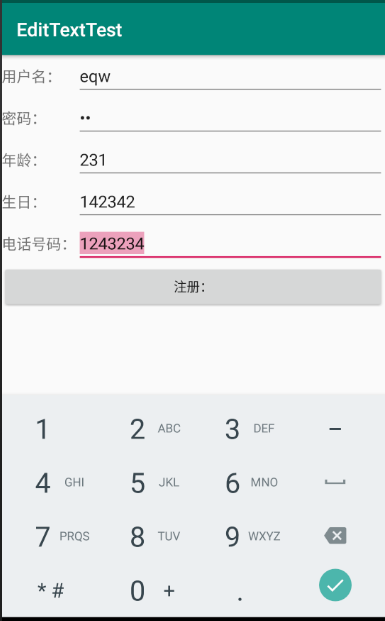 - EditText组件最重要的属性是inputType,用于EditText为指定类型的输入组件